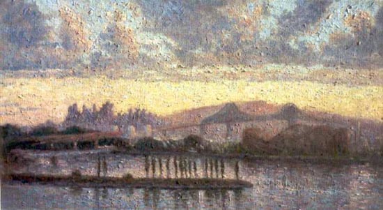 From 1995 to 2000, the main theme of my paintings has been influenced by sights of Montreal as seen from the South Shore where I lived. |