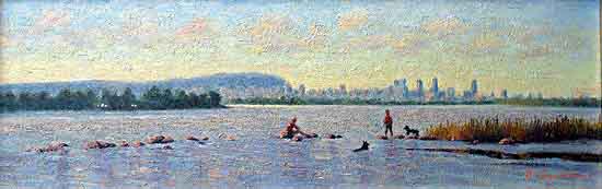 | La baignade (219) Huile sur toile, 8x25, 1995 |
