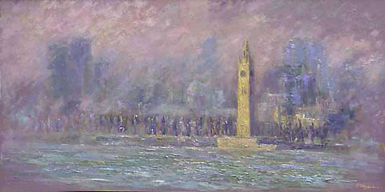 From 1995 to 2000, the main theme of my paintings has been influenced by sights of Montreal as seen from the South Shore where I lived. |